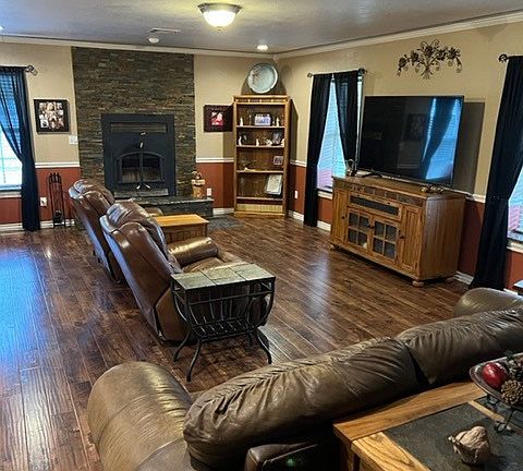 Picturesque 2456 sq/ft home on 5 acres MOL east of Noble in the Norman city limits. The home was built in 2000 and updated in 2016. It consists of 3 bedrooms, 2 baths, and an office area. The living room boasts a Cozy Heat wood stove insert that easily warms the entire house. Also a top of the line HVAC unit that is electric cooling and propane heat. The walls of the home are 10" thick, amazingly increasing the R-value of the structure. In the NE corner of the home is a large safe room built to accommodate a wheel chair. All doors are 36' to provide access for a wheel chair. Outside is a permanently fixed Generac generator that will operate the entire home in an emergency. An above ground pool with wrap-around deck lies on the north side of the home. A covered patio separates the pool area from a 18' x 20' carport. The property has a large double RV storage shop that is fully wired. Behind the RV storage is located a 21' x 48' round barn. To the east of the home is a fully wired 20' x 30' workshop with an additional covered building for parking or storage. The are a multitude of options to reconfigure the office, utility, and storage spaces. It is easy to see that this home and property have been meticulously built and maintained by the sellers.