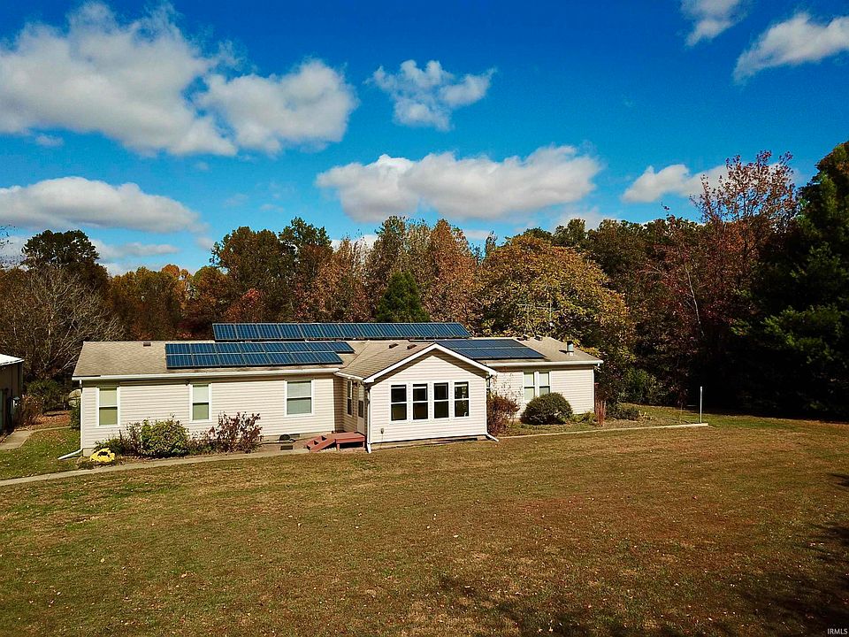 Wonderful country home with large acreage in Warrick county. House sits on 44 acre mostly wooded and rolling land. One of the major advantages of this home is it's solar panels. This house has not had an electric bill over $17 since 2014. The soloar system is grandfathered in till 2046 on their power generation compensation from the utility company. On a typical home this size the utility bill would be at least $350 per month. Imagine not have to pay that every month. There is a small pond on the property for fishing. The woods does have some marketable timber throughout it. There is also an adjoining 10 acres that could be added to the purchase. The home is a 3 bed, two bath home. The master bedroom has a small private offset office/study. The kitchen and dinning area adjoin. There are two family room areas plus living and dinning rooms. The smaller family room has a fireplace to relax by on those cool nights, the larger family room overlooks the back yard and ideal for large gatherings. This room also opens up to both back decks of which one is partly covered. There is a small basement that was put in for canning storage, and in case of bad weather. The home also has an enclosed front porch that adds additional space. Home was built with 2x6 exterior walls for better insulation. owner used it for a green house room. The property has two areas where they have a small orchard to grow your own fruit. There is also a net covered garden for the blueberry bushes. The wildlife like turkey, and deer are seen roaming through the yard on a regular basis. This property would make a wonderful mini farm. You could also ride ATVs or hike the existing trails.