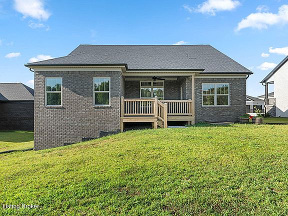 Sellers Say, ''Sell It Now'' at this unbeatable price! It's the ultimate value in Floyd County practically new construction. Poplar Woods features the rolling hills of Lanesville's historic farmlands, and this home boasts a rare uninterrupted view of the neighboring farm with its green pastures, scattered mature trees and a crystal blue sky. No backyard neighbors! Built in 2023, it's spotless and literally better than new! An open floor plan with an extra tall, coffered ceiling blends with the bright white kitchen, black natural stone counters, a mounted range vent and a full set of SS appliance with microwave drawer. The primary suite is styled with coffered chevron wall, elegant soaking tub, separate shower. The finished basement features two family rooms, one is an extra-long and private with a big bright window, plus there is a true 4th bedroom and full bath. The handsome exterior is very stylish, and features covered front porch, 3 car garage, and a covered deck. The sellers added a high-tech water filtering system for softer and cleaner water. They've planted 14 Green Giant trees for privacy and enhanced the front landscaping too. Other bonus amenities include a new refrigerator, disposal, garage shelving and shop lights. The schools are renowned. Corydon is just up the road, there's a variety of quick routes to New Albany and the bridges. Don't hesitate! See it today.
