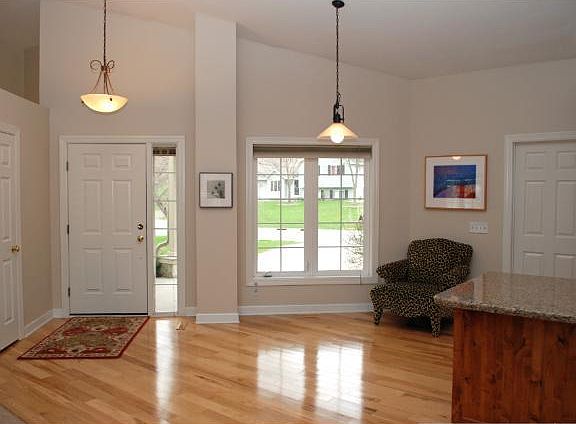 Hard to find walk out rambler in move-in condition. Upgraded gourmet kitchen w/ knotty alder cabinets & Quartz counters, hardwood floors, open floor plan, large deck with private views of a wet land. Finished lower level w/ large storage room
