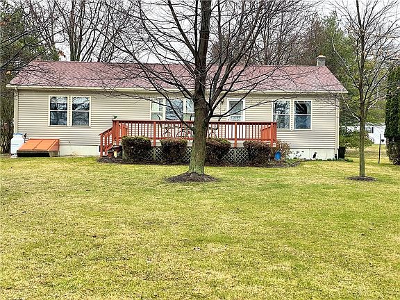 "One Owner Home" has been Meticulously Maintained both inside & out and offers Beautiful Scenic views while you sit on the 16x24 back deck! Nice kitchen with plenty of cabinetry, breakfast bar and included appliances, followed by dinette area for formal dining room set and Hardwood floors. You will love the large living room with continued Hardwood floors and views towards lake of open scenic land & trees with access to back deck and wonderful deep back yard. Owner suite is quite spacious with WI closet, full bath with soaking tub & shower. An additional 2 bedrooms of decent size and Full bath are on opposite side of the home. Convenient Washer/Dryer area off kitchen & storage area are another added bonus. Full Dry Partially Finished Walk-Out Basement makes a great Rec Room or added living space followed by an enormous area for storage and easy walk out. Coal Boiler keeps entire home toasty, house boiler is still in tact also, hot water is fed off coal or oil boiler so it never runs out! 16x24 insulated/Heated garage. Plenty of Parking. Preapproved Buyers Only and 24 Hours to show .