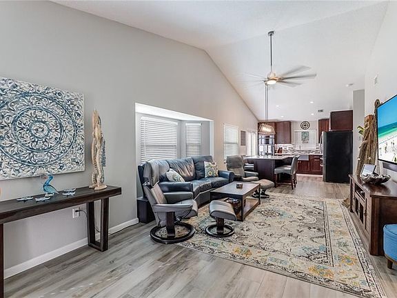 Renovated to the max, ideal location, and affordable on any budget. This 3-bedroom/2-bath, corner lot residence is the perfect starter home or low maintenance retreat. The renovation quality of this home is immaculate. Wood-like tile everywhere, quartz counters, a forecast inset sink and new appliances. The side yard, backyard combo is sizable enough for a pool or plenty of play space for kids or pets. Brand new AC unit installed a year ago, extremely low HOA fees, and no CDD fee. A rare move-in ready option under $300k in a good location.