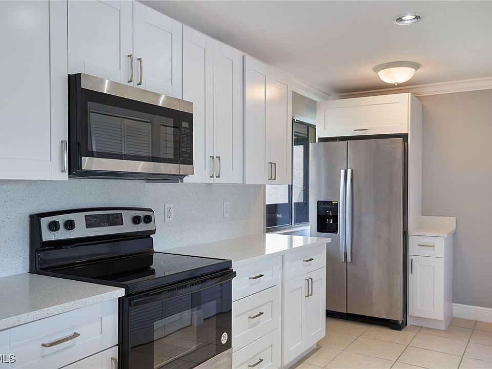 This well-maintained second-floor condo in the heart of Fort Myers features a spacious, open-concept layout with tile flooring throughout and a large kitchen equipped with newer stainless steel appliances, perfect for cooking and entertaining.