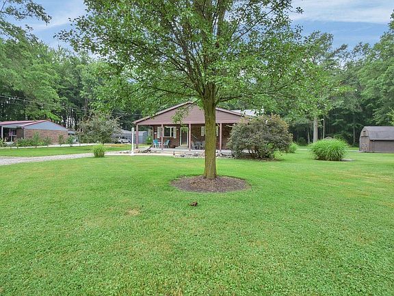 Meticulously maintained 3 bdrm, 1 bath ranch w/ detached 3 car garage on block foundation w/ poured 6 inch slab 36x24 and 60 amp service. Home offers lovely covered porch, hot water heater 2016, 200 amp electric service, dual heat options include heat pump with additional baseboard heat option, roof 2012, large shed, private rear view plus much more! The 2 acres contains 2 parcels that are each 1 acre lots.