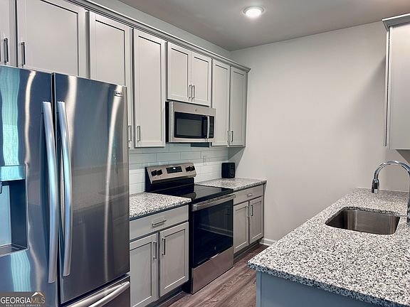 Brand new and spectacular! Be the first to enjoy this spacious 3 bedroom, 2.5 bathroom 2 story townhome. Featuring a light, open living area/ dining area and kitchen which is equipped with an electric range, microwave, dishwasher and refrigerator. The living are features a cozy electric fireplace and the dining area includes built in cabinets and 2 wine refrigerators. On the upper level you will find the primary suite with spa like ensuite bathroom, 2 spacious guest rooms and a full guest bathroom. The laundry room is also located on the upper level. A 1 car garage and rear deck with partial lake view complete this pristine home. Water and landscaping is included in rent. Don't miss out, call today to schedule a showing. Excalibur Homes does not advertise on Facebook or Craigslist. Be advised that the sq ft and other features provided may be approximate. Prices and/or availability dates may change without notice. Lease terms 12 months or longer. Application fee is a non-refundable $75 per adult over 18 years of age. One-time $200 Administrative fee due at move-in. Most homes are pet-friendly. Breed restrictions may apply. Rental insurance required. Copyright Georgia MLS. All rights reserved. Information is deemed reliable but not guaranteed.