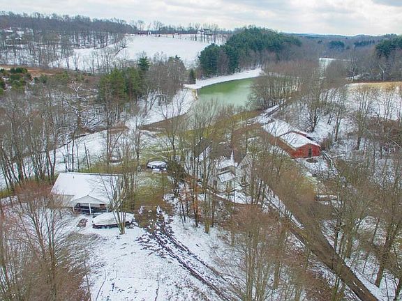 Welcome to Spring Haven Farm! This property includes 2 parcels for a total of over 61 acres, 2 barns, 2 lakes, and 2 homes. The larger of the homes has 5 bedrooms and 3 full bathrooms, including one with an accessible tub. The master suite is spacious with a separate sitting area, large walk-in closet, and huge bathroom with deep tub and separate shower. On the main floor there's a bedroom with french doors to outside and a second bedroom with bath opens to the covered porch. The living areas of the home have a great open flow and the living room and dining room have plenty of space for everyone to gather. The living room features a cozy wood burning stove. A center island in the kitchen provides a space for casual meals. Off the kitchen is a first floor laundry with access to the back deck. The deck was recently rebuilt and has two levels, a pergola, and views of the lakes and spring house. Just up the hill is a second smaller home built in 2005 with two bedrooms and two full baths. This home also has an open concept living area and a back deck with lake views. The fully applianced kitchen includes a breakfast bar. In the finished lower level there's a bar and glass doors that provide access to a patio. Both bedrooms are spacious with their own full bathrooms. Both barns have water and electric service and the larger of the two barns has a concrete floor. Come see all this unique property has to offer, including pear, apple, and peach trees and raspberries in the summer!