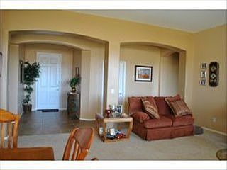 Relax By The Fireplace In This 2,176 Sq.' Home Located In Cul-De-Sac. Large Living Room Windows Invite You Into Huge (Approx. .33 Acre) Yard Where You Can Enjoy Panoramic Mountain Views From Private Covered Patio. Popular Split Floorplan With 10' Ceilings, Extended Master Bedroom, Custom Paint, R-38 Insulation, 2X6 Walls, 3 Car Garage, Low-E Windows + Much More. Home Includes Washer, Dryer & Refrigerator. Walking Distance To Club House And Priced To Sell. Not Short Sale Or Bank Owned