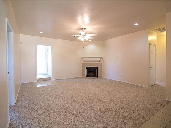 Loads of functionality in this versatile floor plan! This beautiful well-maintained home features 4 bedrooms, 2 baths, & 2 car garage located in the established Liberty Trails neighborhood, just minutes from Tinker Air Force Base. Perfect split floor plan with large kitchen leading into a dining area with fireplace and an add-on including the 4th bedroom and living area. Freshly painted interior July 2017 and newly installed carpet July 2017. Kitchen features a breakfast bar and newer stainless steel appliances including microwave and stove 2017 and dishwasher 2016. Backyard features a large patio, perfect for grilling and enjoying the weather, and a large storage shed with shelving. Keep safe during storm season with a storm shelter in the garage. Don't miss this home in a beautiful neighborhood offering a walking trail, playground and pavilion. This home is a must see!