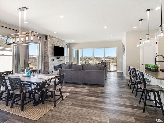 Classic comfort, and the ease of single story living, will greet you every day as the Owner of this captivating 3-bedroom, 4-bathrom ranch complete with finished walk-out basement, which is a special opportunity within the highly desirable Castle Pines area. The property is within pedestrian range of nearby open spaces, and just a short drive to Town Center, shopping and dining options, and schools. Enjoy amazing views of open space and sloping meadow. Enjoy relaxing on the good-as-new composite deck. Step form the welcome mat into an interior embrace that includes a splendid entryway, wide plank hardwoods throughout, an open layout, natural light and stylish fixtures both, neutral color, high ceilings, and a gas fireplace in the great room. The restful primary bedroom includes a large walk-in closet and a private bath with separate tub and shower. Also, sloping meadow views. The other two bedrooms, distributed on multi-levels for privacy, are rich with ample closet space and ready to reflect your good taste in decor. Finished walk-out basement serves as rec room, and guest quarters. Attached three-car tandem garage.