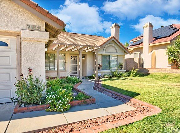 MOVE -IN READY. Beautiful SINGLE-story home in the heart of the Rancho Cucamonga with 3 bedrooms , 2 baths and great size back yard .Lush landscape in the front invites you to a formal living and dining area with vaulted ceilings furnished with wood flooring throughout . Gas fireplace in between your formal dining and living is perfect to decorate and hang your Christmas stockings. kitchen has been newly remodeled with maple cabinets and stone counter tops. Kitchen nook has a built-in bench . Master bedroom with high ceilings covered with carpet flooring .Master bath has been remodeled with dual sink vanity and granite counter tops , a spa- like tub and over-sized shower with newer faucets. Two additional bedrooms covered with carpet flooring. Covered patio in the backyard makes it perfect for entertaining and enjoying your evenings. Very close to shopping and easy access to walking trail is an added benefit to this house .