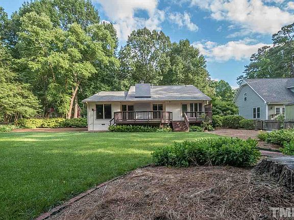 Fantastic ranch home in an established neighborhood with an amazing yard in North Raleigh! Large kitchen w/tons of potential for udpating & spacious living room w/gas log fireplace! Master bedroom features large walk-in closet & private door to the deck. Outside you'll find a huge deck, beautifully landscaped flat lot w/lush green grass (backs stream), storage shed + room for gardens! Ovesized 1-car garage w/workbench & shelving + XL parking pad! Great location close to shopping, restaurants, gym & more!