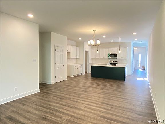 - Description: Hardwood floor, open to kitchen/dining area