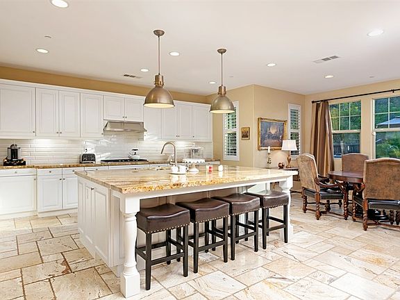 Simply Stunning! La Costa Oaks home on a huge lot located on a cul-de-sac. Enter to an expansive foyer that seamlessly flows to the heartbeat of the home. Here you will find a beautifully appointed kitchen with an over-size center island, granite counters, built-in appliances, & a spacious daily dining nook overlooking the stunning backyard. Adjacent to the kitchen, family room features a gorgeous fireplace flanked by built-in cabinets. Step outside to experience the custom designed yard. See supplement