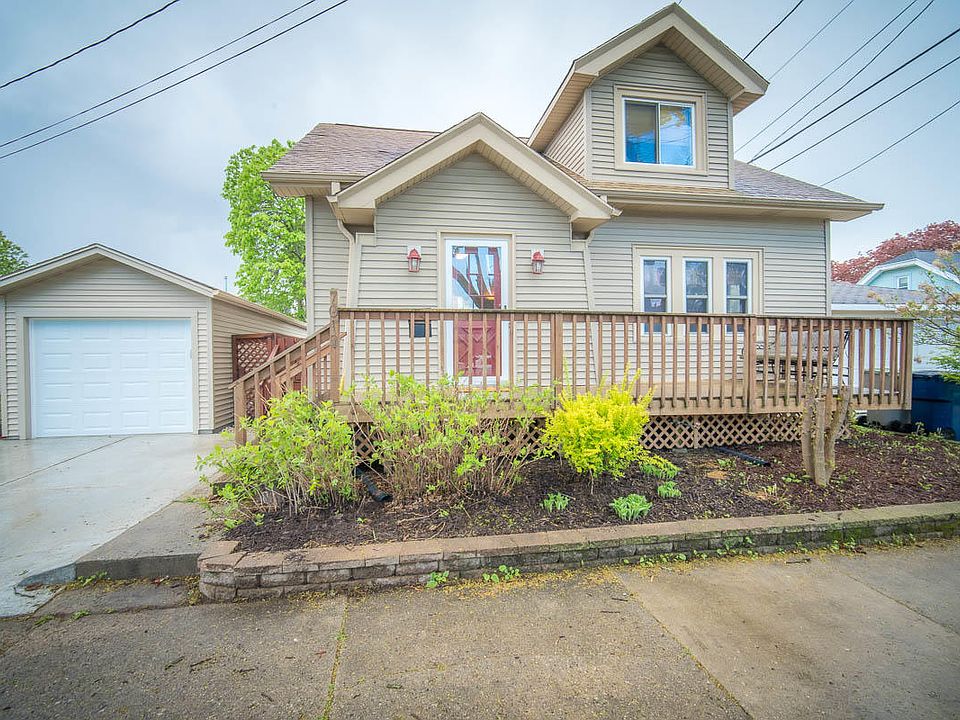This charming bungalow has newer furnace, roof and garage. The fenced yard and spacious deck is ready for summer fun. Inside find an updated kitchen w/large pantry area and a fomal dining room with BICC. The main floor bedroom is currently used as den/office. Upstaris boasts a large master bedroom, 1/2 bath, loft area and 2nd bedroom. Plenty of options for the lower level that is already partially finished. Don;t let the garage fool you. It is a 2 car tandem currently used to store 1 car in the front and has a workout area in the back.