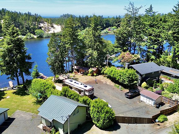 Experience the ultimate lakeside retreat at this stunning property located on the shores of Saunders Lake on the Southern Oregon Coast. Boasting a private dock, this property offers unparalleled access to the tranquil waters, perfect for fishing and water enthusiasts alike. Includes 2 full RV hookups and a 3rd hookup with power and water, along with 2 support buildings, this property is designed to roll up and experience everything Oregon Coast has to offer. All utilities are in place to build your dream lake home. The DEQ permitted septic system, large well pump house with storage, and shipping container with power ensure that all your needs are met, whether you're hosting guests or enjoying a peaceful getaway. Take in stunning views of the lake and the Oregon Dunes just across the water, where you can explore on ATVs and immerse yourself in the natural beauty of the surroundings. In the evenings, gather around the lakeside fire pit or relax in the hammock, creating memories that will last a lifetime. For outdoor enthusiasts, this property offers excellent fishing opportunities for trout, bass, and steelhead, as well as paddle boarding, swimming, and kayaking on waters of the lake. The gated and fenced property provides security and privacy, with a mostly level lot offering ample parking space for boats and ATVs. Whether you're seeking a weekend retreat or a place to enjoy quality time with friends and family, this property is the perfect beach recreation destination. Don't miss out on the chance to own a piece of lakeside paradise on Saunders Lake in Oregon, where every day offers a new adventure and the opportunity to create lasting memories. Buyer to verify information.