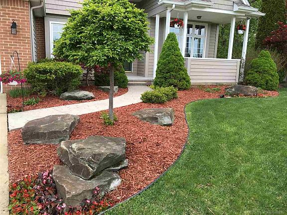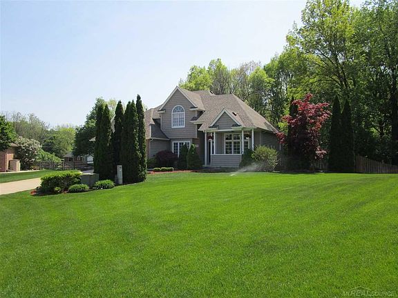 Welcome home to arguably the nicest house, on the best lot in this complex!! 1/2 acre, partially wooded lot is gently sloping and beautifully landscaped. Invisible fence on property. Gorgeous views in all seasons from the floor to ceiling windows in the great room. Pan ceiling in master bedroom with walk-in closet, master bath with spa tub, separate shower, double sinks/vanity. Bonus room upstairs with 2nd laundry hook-ups. Formal dining room with French doors. Beautiful kitchen with wooded view, walk-in pantry. Breakfast nook features 2 sided fireplace to the great room & doorwall to deck and backyard. Summer evenings will be delightful on this multi-tiered deck with built-in gas grill and hot tub. Finished, walk-out basement with full bath and plenty of storage. Wooded area with path leading to firepit. Inground sprinklers, security/surveillance system.