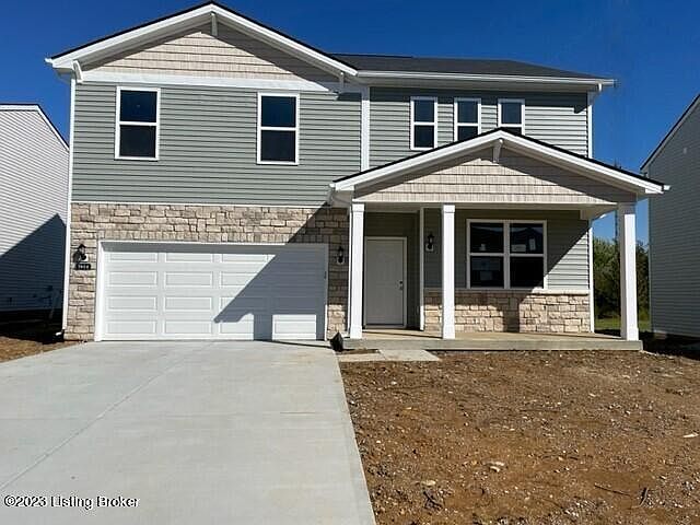 Located in the highly sought after Oldham County School District. This home can close in October/November! This craftsman style home with large inviting front porch is sitting on a cul-de-sac on a great homesite! The Hampton floor plan gives you all the space in a 4-bedroom home with 2 flex rooms that can be a home office or play area. The kitchen is a favorite in this home with the oversized granite island, tons of storage with the walk-in pantry, gorgeous white cabinets and light luxury vinyl plank flooring. You will be ready for the holidays with the spacious gathering room, and the loft upstairs can be a media or game room. The owner's suite will fit large furniture and as a bonus there is 2 sinks in the bath and a walk-in shower. The convenience of the 2nd floor laundry is a must!