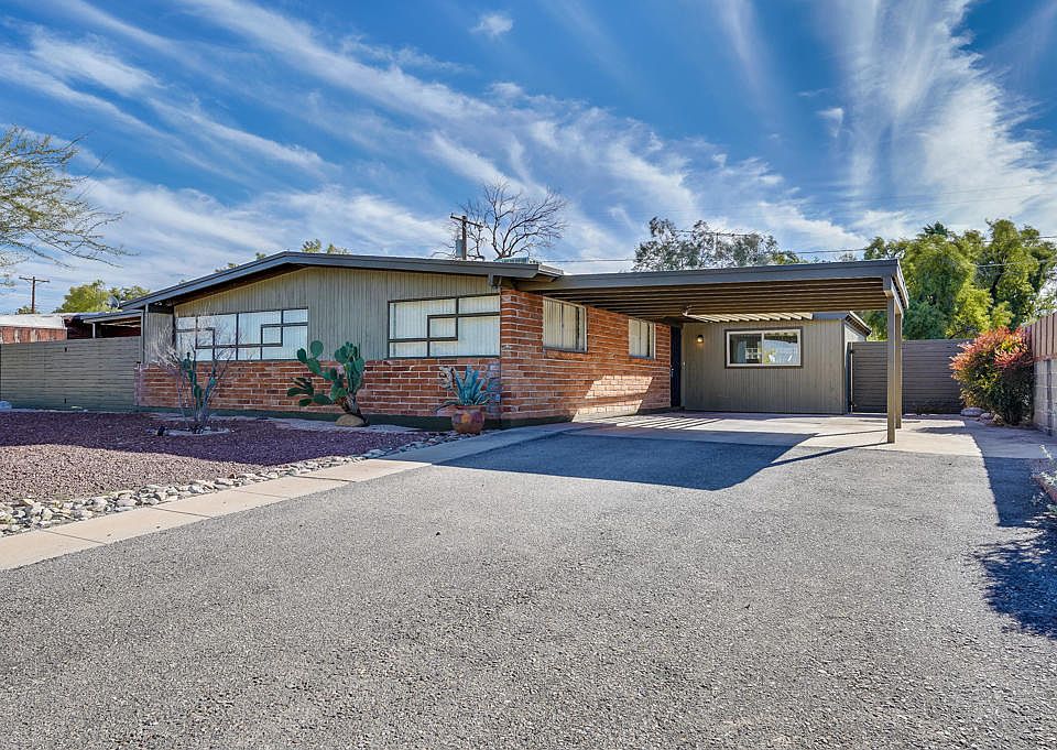 Beautiful Mid-Century Modern in desirable Kingston Knolls Terrace! This gorgeous home boasts 1,799 sq ft with 3 bedrooms, plus a den or bonus room and 2 bathrooms, sits on a spacious .19 low care lot! Walk in the front door to sight lines in every direction with family room that is wired for surround sound to the right and formal living room with real adobe fireplace to the right. Large kitchen has two skylights, ample cabinetry and plenty of room for a center island! Master bedroom has 3 closets, great sized bathroom and private patio to enjoy mountain view! Home has been completely repainted, inside and out and is clean, clean, clean! Roof was re-coated in Jan 2019 and comes with warranty. Brand new water heater, newer HVAC unit...the list goes on. Backyard has completely new fence with accents plus huge storage shed. This home will not disappoint!
