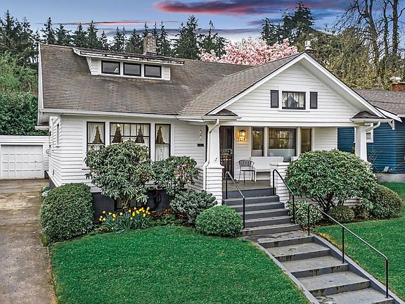 This 1923 craftsman bungalow exudes timeless character. The spacious living room features a gas fireplace and beautiful built-ins, creating a cozy and inviting atmosphere. Across from a family room showcasing more classic built-ins and hardwood flooring underneath the carpet, perfect for entertaining. The kitchen is equipped with a gas stove and a charming breakfast nook, ideal for morning coffee or casual meals. This 3-bedroom home sits on a storybook yard with mature landscaping, providing a serene outdoor retreat. A full basement (1,178 sq. ft.) with a separate side entrance presents endless possibilities—whether as a studio, home office, craft space, or potential apartment conversion. The primary bedroom and bathroom are on the main floor. The property also offers ample off-street parking with a very long driveway and a detached garage in the back. Located in a highly walkable neighborhood with a Walk Score of 88, this home is just minutes from Mt. Tabor, downtown Portland, the Portland Airport, and public transportation. With a high Bike Score, getting around the city is effortless. Combining historic charm, modern amenities, and incredible potential, this bungalow is truly a rare find in one of Portland’s most sought-after neighborhoods. Pet free home. Open Houses: Sat April 12th 2-4 pm and April 13th 2-4 pm