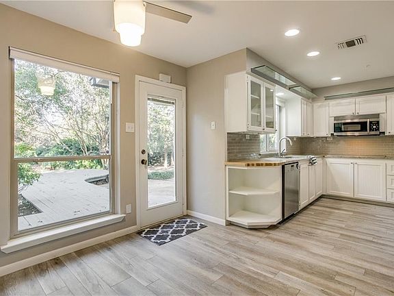 Serene setting w over one acre & walking distance to White Rock. Fully privacy fenced & gated w 388 ft. on Fisher & backs to the Katy Trail. The main home built by an artist w custom mill & glass work & has recently been updated w new paint, flooring, carpet, & baths. Accessible through the main garage is a nanny suite w bath & walkin closet opens to the pool. Above the main garage is a studio. A separate garage & apt built in Dec 14 has a full bath, bedroom, living & kitchenette. Separate garage holds 3 cars, a car lift & double glass doors. The pool was remodeled w new decking, fire pit & mosquito spray system. The property has a combined total of 6000 SF w the main house, guest quarters, studio & garage apt