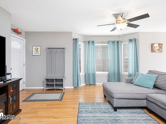 This stunning 4 bedroom home boasts a large 2 car garage, newly updated bathrooms & kitchen, large fenced backyard, and a south facing rear deck for all day AK sun! With plenty of natural light, the house offers spacious living areas while the backyard and deck offer private outdoor spaces perfect for relaxing or entertaining. All furniture in the home may stay with an acceptable offer.