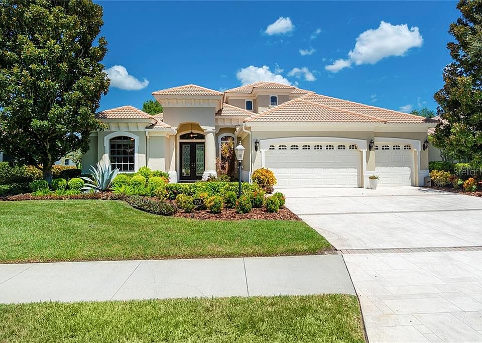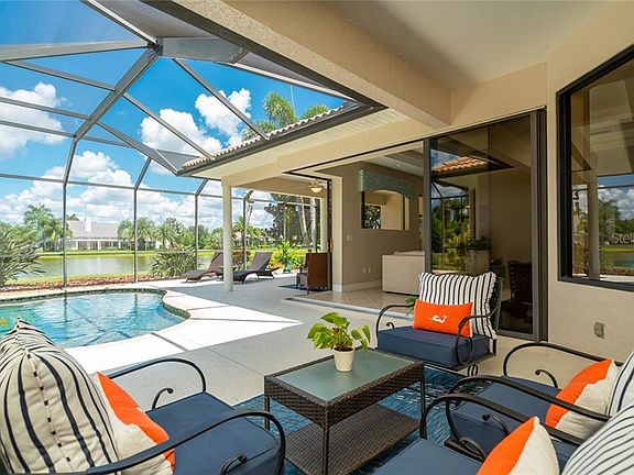 Gorgeous lake-front home in the prestigious Lakewood Ranch Golf and Country Club. You must visit the home to appreciate the expansive outdoor view from almost every room! When you first arrive, you will notice the refreshed lush landscaping and the full three-bay garage. The freshly painted neutral color palette of the home enhances the curb appeal as well as the outdoor living area in the large 125 sqft lanai. The home also has new interior paint throughout with a neutral color to showcase the substantial wood trim throughout. Beautiful 16 inch neutral tile laid on a diagonal is throughout the main living areas to compliment most decor styles. This recently updated home features an open concept layout. The kitchen has been recently renovated with upgraded custom cabinets, appliances, and quartz countertops. New flooring includes engineered hardwood and carpeting in den and bedrooms. The luxurious pool and spa have the durable Pebble Tec finish, in-floor self-cleaning system, and a low maintenance saltwater sanitation system. The pool and spa are heated quickly and efficiently via a gas heater for year-round comfort. The home is perfect for entertaining and large family gatherings with four bedrooms, den and an upstairs bonus room. One of the bedrooms is currently utilized as a wonderful home office offering a wonderful view. The landscape of the gated community of the Lakewood Ranch Golf and Country Club boasts a rich history and maintains nearly a third of the acreage as natural lakes, like the one in the back yard, wooded areas and gorgeous common areas which provide the needed terrain for the deer and variety of birds that can be seen daily. The Golf and Country Club memberships are optional but will appeal to most. The PGA award winning golf courses were designed by Arnold Palmer. The club also has a superior tennis and fitness center. There are seemingly unlimited miles of bike and walking paths as well. This has been the multiple award-winning planned community due to rare existence of such a large area of fabulous landscape and the careful development to not spoil it for future generations. While this home has peaceful privacy, it is also within a few miles of the University Town Center shopping and restaurants and the upcoming Waterside at Lakewood Ranch. It truly is a perfect lifestyle.