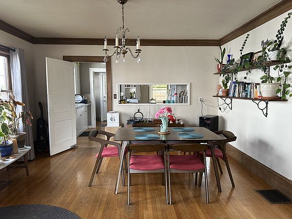 Available June 1st. Beautiful 3 bedroom 1 bath home with bonus yoga/office/guest room. Beautiful craftsman style home with large living area with functioning fireplace. good sized dining area. Kitchen with sunny dining nook. Hardwood floors throughout and unpainted original woodwork abounds. 2 bedrooms on the main floor along with remodeled bathroom. Upstairs small bonus area on landing and 1 bedroom with closet and a bonus room for office/workout/yoga/guest room that has not closet. Shared backyard with raised planter beds and covered shaded patio. Covered bike parking. plenty of street parking available in the area. Shared laundry area available as well. Great location just North of Pennisula Park and easy access to I-5. Close to both New Seasons and Fred Meyer for your grocery shopping needs. Only a mile away from the happening Mississippi district, and even shorter to Dekum Triangle and Kenton. You also have the North Williams corridor close by as well as the Alberta Arts district. Cats negotiable. $25 per month per cat. Sorry, no dogs 3 person maximum occupancy for this house All Utilities split based on number of people living on the property. There is a basement unit an ADU. 1 year lease required. Credit check upon application. First months rent and 1 month security deposit to move in. IMPORTANT We are looking for thoughtful, considerate and easy going people that want to make a home of this beautiful place. There are other tenants on the property but the only areas you share are the laundry room and Back yard. If this home sounds like something you would be interested in please contact me with a little information about yourself. Please remember to leave a contact phone number where you can be reached. **This home is not ADA Compliant The City of Portland requires a notice to applicants of the Portland Housing Bureau's Statement of Applicant Rights. Additionally, Portland requires a notice to applicants relating to a Tenant's right to request a Modification or Accommodation. 1 year lease. Utilities are $115 per person per month based on 3 person occupancy. Included in the utility fee is Internet, electricity, water, and sewer as well as garbage and recycling.