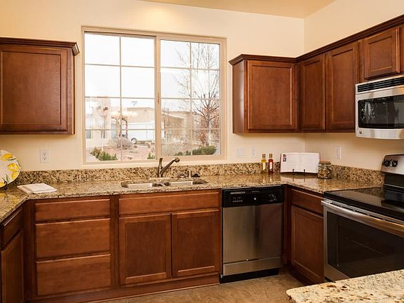 Beautiful turnkey 4 bedroom home ready for the right buyer to move in. Lots of light downstairs with view windows, and an open floorplan with a central gas fireplace that provides both heat and convenience.The kitchen is upgraded with Granite countertops and stainless steel appliances. The spacious yard is xeriscaped and fenced, and is bordered by open land. Upstairs the generous master suite offers granite bathroom countertops and a luxurious oversize tub. The peaceful location offers quick access to I-25, Highway 599 (and downtown Santa Fe), and shopping centers on Cerrillos and Rodeo Rd.