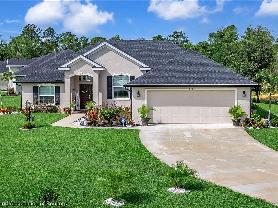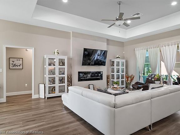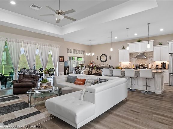 COME SEE THIS BEAUTIFUL, ALMOST BRAND NEW 3 bedroom + Office home on spacious corner lot in Magnolia Place of Sun 'N Lake of Sebring. Pulling up to this house, you'll immediately notice the huge lot, pristine lawn and lovely landscaping. The covered & tiled front porch welcomes you into the inviting foyer and great room beyond. The kitchen, with a center island, is open to the living & dining areas, and features stainless steel appliances + stainless vent hood, a pantry, granite counters, soft close cabinets & drawers, and herringbone tile backsplash. The living room features a cove ceiling, and an electric fireplace with tiled hearth. The dining & living areas both open to the screened lanai. This split plan offers two guest bedrooms & a bath on one side of the home, with a pocket door separating this wing for privacy. The owner's suite, with cove ceiling, is located on the other side and features a walk-in closet and spacious bathroom with tile flooring, dual sink vanity with granite counter, walk-in shower & private water closet. There's also an inside laundry room with sink & lots of cabinets & closet for storage. You'll appreciate the oversized true two-car garage and the large screened lanai in back, that's almost the length of the home, and features a door at each end leading to your beautiful yard.