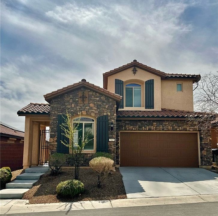 Welcome to 7015 Cordite Road, an exceptional two-story single-family residence nestled in the sought-after Tierra Vista at Mountains Edge community. This home features 3 bedrooms, 3 bathrooms, a 3-car garage, a loft, and a den, all enhanced by captivating mountain and partial city views. Upon arrival, you'll be greeted by a private courtyard with a gated entry, setting a tone of elegance. Inside, discover stunning tile and hardwood floors throughout. The spacious kitchen is adorned with granite countertops and stainless steel appliances, seamlessly blending style with functionality. The primary bedroom offers a tranquil retreat, complete with a large balcony showcasing picturesque mountain and city vistas. Outside, the oversized backyard provides easy-to-maintain artificial turf, creating an ideal space for outdoor relaxation and entertainment.