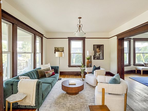 Welcome home to this classic Portland Foursquare WITH an ADU! Located in the lovely Piedmont neighborhood, near Peninsula Park and Rose Gardens, this home perfectly blends historic character and modern comforts. Offering 4 spacious bedrooms and a versatile 5th bonus room, that is perfect for an office or extra bedroom, along with 3 full bathrooms.This residence is designed for versatility, making it ideal for professionals who love to entertain, families and multi-generational living, and those seeking a charming, character-filled home that offers additional rental income.Large windows flood the living spaces with natural light. Original woodwork and built-ins throughout. Main floor has a circular flow that makes it perfect for hosting dinner parties with friends or family gatherings for the holidays. Retreat upstairs to find 3 generously sized bedrooms, an additional bonus room for an office and guest space, and a beautifully appointed bathroom.Don't miss the incredible attic space, which offers endless possibilities for a spacious studio, office, playroom, or an extra-large sixth bedroom suite.The fully permitted ADU basement apartment has its own exterior entrance with a full kitchen, living space, bath, and laundry room. It's the perfect space for mom, a home office, or a lucrative rental unit. Updates include all new interior paint, A/C, and newer windows. Walking distance to New Seasons, Fred Meyer, Peninsula Park, and public transit. Open House Saturday, 6/28 from 12-2pm! [Home Energy Score = 4. HES Report at https://rpt.greenbuildingregistry.com/hes/OR10239432]