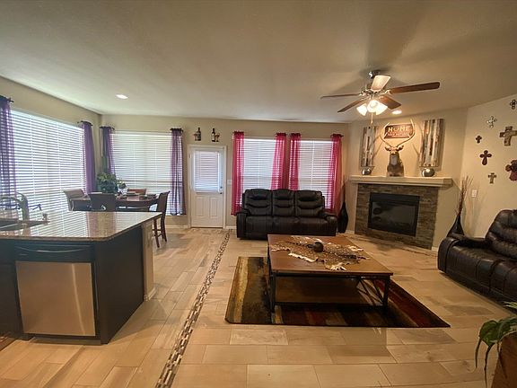 Gorgeous, almost new (2018) home in highly desired area! You'll love the floor-plan -- 4 generous sized bedrooms w/ 2 & 1/2 baths. Open living/dining/kitchen area w/ tall ceilings & cozy fireplace. 2 living areas plus a flex room (formal dining/office/playroom) that is currently being used as 5th bedroom. Large, downstairs master suite; bathroom offers separate shower, tub, dual vanities & dual sinks and big walk-in closet! Good sized back yard w/ covered patio & extended open patio. Call today!