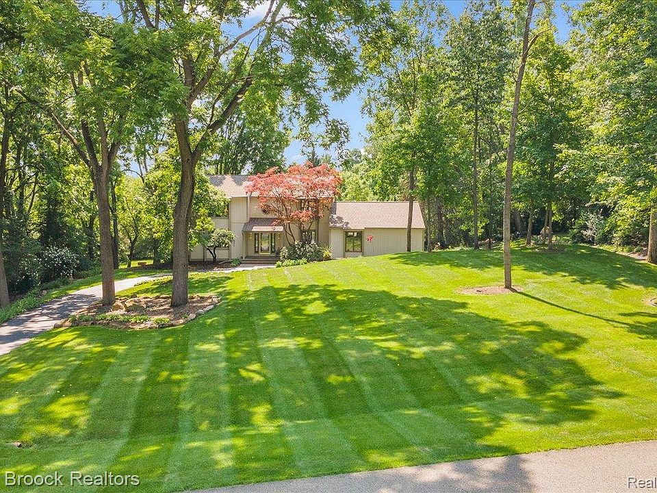 ALL OFFERS DUE BY 5:00 PM SEPTEMBER 1ST. Amazing opportunity to live within walking distance to downtown Clarkston and enjoy the Lake Lifestyle on Deer Lake. Immaculate, updated home with a mid-century modern vibe. Nestled amongst nature on a wooded 1.8 acre lot offers complete privacy, yet close to restaurants, shops and today's conveniences. Custom interior with unique architectural designs. Gorgeous hardwood floors, solid interior doors, elegant lighting, neutral tones and spectacular ambiance. Etched glass entry invites you into two story foyer with curved staircase. Great Room with custom entertainment center with gas fireplace and built-in bar and beverage center. Many floor to ceiling windows and doorwalls bringing the outside in. Breakfast Room with doorwall to fabulous enclosed porch leading to deck overlooking park-like setting with firepit. Gourmet granite island kitchen with SS appliances, custom stone and tile backsplash surround. Formal Dining Room with custom chandelier and elegant wall cover. Cozy library with natural wood walls, fireplace and built-ins. 1st floor powder room and laundry. Second floor features oversized Primary Suite with new euro bath, floor to ceiling tile walls, heated floors, shower and soaking tub. One of a kind double trough sink vanity leading to designer closet. 2 additional bedrooms and full bath follows. Finished lower level with over 1,000 sq. ft. featuring Family Room with fireplace, 2nd kitchen and bar area with doorwall leading to outside patio. French doors leading to guest suite, full bath and utility area with tons of storage. Prestigious Deer Lake Farms subdivision offers a 20+ acre nature preserve with private beach on Deer Lake.