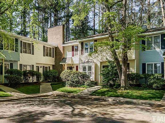 Updated move-in ready 3 bed 2.5 bath townhouse style condo in prime North Raleigh location. Spacious living room with wood burning fireplace & French door to patio. Crown molding throughout, recessed lighting, smooth ceilings, renovated kitchen, new cabinets, SS appliances, glass tile backsplash, and a breakfast bar. MBR with walk in closet and updated full bath. Conveniently located to the brand new North Ridge Elementary, delicious restaurants, shopping, schools and 540. Low HOA & wonderful community.