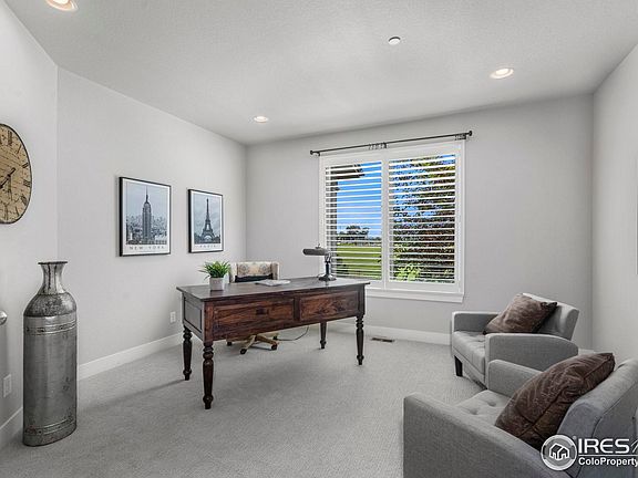A Rare Find! We invite you to come discover the wonders of WildWing, one of Northern Colorado's most sought-after neighborhoods. Located on the banks of Timnath Reservoir with parks, swimming pool, walking paths and natural elegance second to none, this is truly a place you can LIVE. Safely situated on a quiet street next to WildWing Park this generous ranch-style patio home with a 3-car garage is ready in every way. Step from the front covered porch onto the hand-crafted wood floors that span throughout the main floor. The main floor guest bedroom and full bath nearby are tucked away creating a quiet space. On your way to the kitchen you will pass a well-lit room with beautiful glass French doors and offering a variety of uses, perhaps a home office or studio. Cooking up your favorite meal is a treat in the gourmet kitchen outfitted with the full complement of included professional grade stainless steel appliances, custom cabinetry with roll out shelves, and stunning quartz countertops. The dining area and primary living space are flooded with natural light from the expansive southern windows and directly connect to the kitchen. Also on the main floor is the owner's suite, your own personal oasis, the perfect place to rest and renew yourself. As expected, there is a 5-piece luxury bathroom and walk-in closet. Just off the garage is the laundry/mud room. The finished basement is a great place for all sorts of fun. The rec room is big enough for a pool table or comfortable open theater. Two additional bedrooms, full bathroom and a flex room that can be anything you desire round things out. If a high-quality outdoor living space is on your list this home will deliver. The back porch is fenced and even has space to do a little gardening. Other fine features include: high efficiency furnace, humidifier, owned solar panels, outdoor gas line for BBQ and more. This home has been pre-inspected for your confidence, carefully maintained & upgraded overtime.