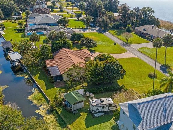TREASURE ISLAND A TRULY HIDDEN JEWEL! Enjoy both worlds of living LAKEFRONT and CANAL FRONT on a peninsula. Your own private boat dock and lift complete with electric hoist on the canal and directly across the street is Lake Griffin waiting to build your dream boat house. Picturesque sunrise and sunset with breathtaking view from your own yard. Just imagine taking a boat ride through the Chain of Lakes and via the Ocklawaha and St. Johns Rivers all the way to Jacksonville and the Atlantic Ocean! Come and see for yourself this magical Florida Living. This waterfront home sits on a 1/3 acre lot surrounded by fruit bearing mature Tropical Trees, like Mangoes, lychees, starfruit, sugar apple, bananas, peach, loquat, sapodilla (chicho), guava calamundin and pomegranate with gorgeous paver patios and HUGE driveway perfect for parking your RV, boat or other toys plus additional parking pad across the street. 13X16 Workshop shed with electric can be a man's cave. Energy efficient Metal Roof and Trane HVAC. Beautiful engineered hardwood flooring and enclosed florida rooms for more entertaining. Private Water treatment owned & operated by 8 household only $15/month. NO HOA!!! Come enjoy life with birds & nature. A perfect nature lovers retreat! Just minutes from town, medical facilities, restaurants, & shopping. One of a kind property! Rare opportunity to own a property under $400k on Lake Griffin! What more can you ask for? Must see it to believe!