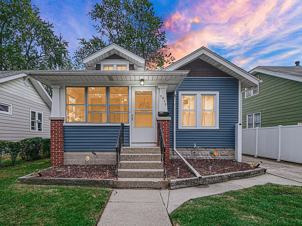 Do not miss your opportunity to own this cozy 2 bed, 1 bath ranch home on the south side of Hammond. Located just minutes from the new South Shore station and the expressway, this adorable home is move in ready! As you enter the home, you will notice that the siding and the roof have been recently updated (2021). You are then welcomed into the cutest enclosed front porch where many good books have been peacefully read. The home has 9 foot ceilings with the original crown molding and hardwood floors, with the windows being installed in 2018, offering charm and modern convenience. The kitchen was also completely updated with granite counter tops and stainless steel appliances. The two bedrooms are a great size and the bathroom has been elegantly updated. There is a large unfinished, waterproofed basement that holds tons of possibilities including another sitting room. Outside, the yard is fenced in, the driveway is long and a 1.5 car garage completes this exceptionally priced home.
