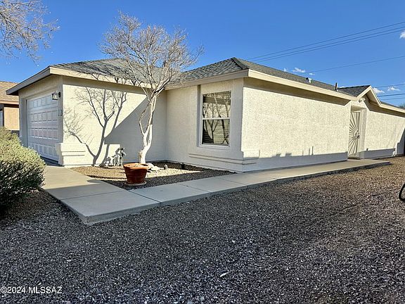 Welcome to your new home! This immaculate 3-bedroom, 2-bathroom gem is move-in ready and boasts a charming flagstone backyard, covered patio, and garden beds for you to enjoy. Other features include fresh exterior and interior paint, 12 x 24'' tile flooring throughout, a new AC unit, a new water heater, high-efficiency washer and dryer, stainless steel appliances in the kitchen, and the finished garage is equipped with a brand-new door and motor. Additionally, the roof underwent a complete renovation in 2018. Conveniently situated near parks, shops, Davis-Monthan Air Force Base, just a 15-minute drive from Downtown and the University of Arizona, and easy freeway access. Don't miss the chance to make this beautifully maintained residence your own!