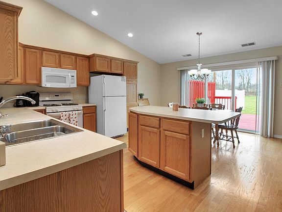 BEAUTIFUL WELL MAINTAINED HALF DUPLEX ONE LEVEL RANCH HOME in the Highly Desired FOXWOOD VILLAS of SCHERERVILLE! Freshly Painted Spacious Open Concept Livingrm w/HIGH VAULTED CEILINGS & SKYLIGHTS for lots of Natural Lighting, COZY GAS FIREPLACE w/Matel, Can Lighting & Ceiling Fan! Huge Eat-In Kitchen includes 6' ISLAND COUNTER, Quality Oak Cabinets w/CROWN MOLDING, Newer Pendant & Can lighting & PATIO DOORS THAT OPEN TO 16'X12' DECK along with Huge Backyard that is great for entertaining Family & Friends! SPACIOUS 15x13' MASTERBEDRM has Walk-in Closet & ATTACHED MASTER BATH ENSUITE w/Step-in Shower! Laundry includes Dryer & NEW WASHER, Sink & Cabinets. SPACIOUS 2ND 13X12' BEDRM w/Closet & Ceiling Fan/Light. Main Bath w/Tub/Shower & Pedestal Sink & Wall Cabinet. Foyer w/Coat Closet opens to Attached 2 CAR GARAGE W/OPENER & Keypad entry. Baths & Laundry w/CERAMIC TILE FLRS! Seller providing 1 yr HSA BUYER HOME WARRANTY! Close to Shopping & Restaurants! LOW INDIANA TAXES ONLY $1563 A YR!