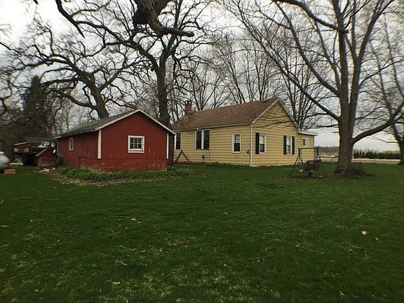 ONCE WAS AN OLD SCHOOL HOUSE CONVERTED INTO A HOME. PLENTY OF ROOM FOR BIG TOYS. WIDE OPEN SPACES WITH CORNFLIEDS AND PRIVACY FROM NEIGHBORS. OUTSTANDING RASPBERRY BUSHES ON PROPERTY.Updating needed. New hot water heater, Septic is newer as well. 2 garages detached 1 1/2 and a 2 car. SOLD "AS IS". MAKE AND OFFER.