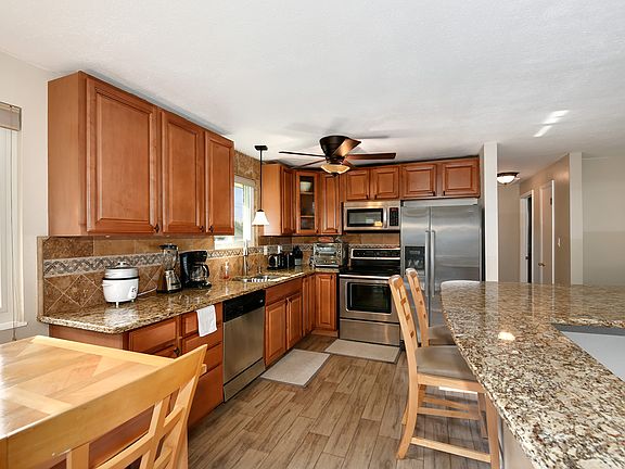 Neatly kept 5 beds/2 baths ranch home full of upgrades, w/ sprawling yard in centralized Arvada location. Enter through a charming front porch, into an open layout w/ wood burning fireplace, tile floors and finished Bsmt w/ bar and storage room. Ample, updated kitchen, featuring granite slab breakfast bar and countertop and all s.s. appliances. Entertainer's backyard w/ covered patio, large deck and privacy fence. Updated baths, no HOA, 2016 roof, sewer line, and new carpet on main level beds!