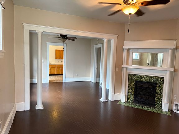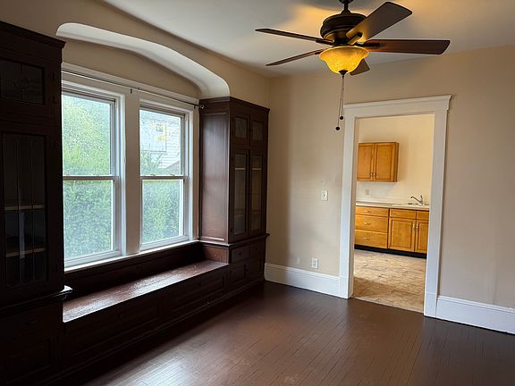 Nice, clean and fresh two bedroom downstairs unit with refrigerator and stove included. A large kitchen with updated cabinets, a nice size living room with a decorative fireplace and a dining room with built-in cabinets. The bath is bright and beautiful with a modern tub/shower combination. This is the downstairs unit of a duplex with a front and back porch . There is a large shared basement with washer and dryer hook-ups that can be used for extra storage space. There is off-street parking and it is close to shopping and public transportation. We do have a pet policy.