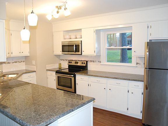 A fresh 3bd/2ba ranch house in Raleigh, close to Crabtree Valley Mall and Lake Lynn. The house has a remodeled Kitchen with granite countertops and stainless steel appliances, all new windows, and new flooring. Washer and dryer included. Outside there is a large deck and private backyard along with an attached single car garage and plenty of additional parking in front. Tenant responsible for all yard maintenance.