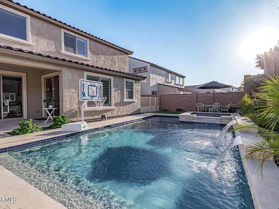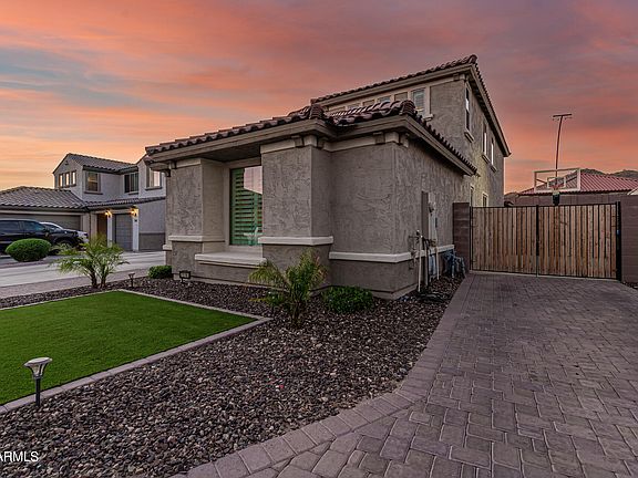 PRICED TO SELL! W/OVER 80k in upgrades!! This 4 bed, 3.5 bath home features great curb appeal, 3 car garage, RV gate, well-laid pavers & landscaping w/artificial turf. Step into the elegant interior which showcases wood-look tile flooring, carpet in all the right places, plantation shutters, dazzling light fixtures & neutral palette throughout! Discover spacious living area bathed in natural light featuring high ceilings. The chef's kitchen is comprised of ample cabinetry w/crown moulding, walk in pantry, granite counters, subway tile backsplash, stainless steel appliances, an island w/a breakfast bar & butlers pass! Enjoy dinner in the eat in kitchen or turn it up a notch in the formal dining, this home has both! Get ready to pack your bags, this resort style backyard will win you over! Continue upstairs and into the cozy loft, where you can sit back and enjoy a relaxing Sunday afternoon. The primary bedroom showcases a walk-in closet and a full bath w/dual sinks for added convenience. Don't forget about the cozy den, ideal for an office or reading nook! Finally, the wonderful backyard includes a covered patio, extended flagstone seating area, a fire pit, built-in BBQ, and a sparkling blue pool/spa combo! The home of your dreams is here, act now before it's gone!