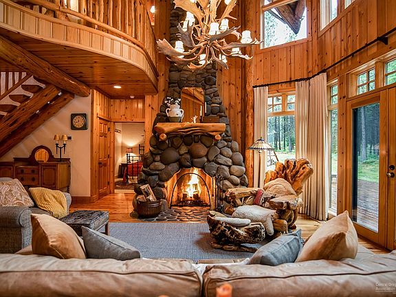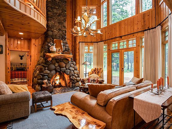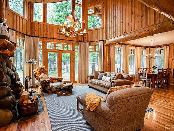 One-of-a-kind lodge-style home at the end of a quiet cul-de-sac and abutting tranquil Deschutes National Forest land. Open floorplan with extensive custom woodwork and exposed timber beams throughout. Awe-inspiring family room adorned with wood floors, soaring ceilings, massive stone fireplace, and floor-to-ceiling windows framing a lush forest view. Private, main-level master retreat boasts trench doors opening to back deck. Luxurious master bathroom features tiled step-in shower, jetted tub and dual-sink vanity. Huge loft with built-ins makes an excellent game room or library. Fourth bedroom is massive and is plumbed for a wet bar, making it a perfect bonus, rec, or bunkroom. Relaxation and recreation await at community venues including golf, tennis, swimming, bike trails, and so much more. Newest Black Butte Ranch pool just a 3-4 minute walk or quick downhill ride on bike path. Excellent rental property (Rates: $700 peak season, $500 slow season).