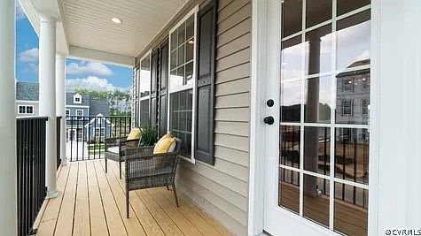 The Grove by Main Street Homes! This Energy Star certified 3 story end unit townhome offers 2 bedrooms, a study, 3.5 baths, oak stairs from 1st to 2nd level, rear entry 2-car garage, tankless water heater, rear deck, low maintenance vinyl siding, and first and second floor front columned porches. The first floor includes a study, full bathroom, and a coat closet. The second floor open concept offers a powder room, large great room, dining room, and a gourmet kitchen complete with quartz countertops, ceramic tile backsplash, stainless steel appliances, and a large 8’ island. The third floor includes a spacious primary bedroom with 2 walk-in closets and ensuite bathroom with ceramic tile shower and double bowl vanity, a guest suite with a walk-in closet and full bathroom, and a laundry room. Cosby Village amenities include a clubhouse with fitness center, a resort style pool, dog park, community garden, paved sidewalks with pocket parks, and walking trails. Cosby Village will give you low maintenance living right off Hull Street Road and Otterdale Road in a top ranked school district near shops and dining. PHOTOS ARE SAMPLES AND NOT OF ACTUAL HOME.