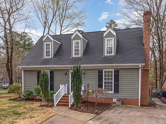 Beautiful Cape Cod in charming Brittany Woods. This home has been lovingly updated and well maintained. This home is nicely situated on a landscaped lot in a quiet cul-de-sac, and has a lovely deck overlooking the backyard. Smart sellers have taken care of the 'big stuff'' (2020 roof, 2022 HVAC, 2023 water heater, sealed crawlspace) and also updated the kitchen and baths. Beautiful hardwards throughout the main level, up the stairs and hallway. FIRST FLOOR PRIMARY SUITE (nearly impossible to find in a detached home in this price range) and a first floor walk-in laundry/utility room as well. Family room with masonry fireplace, and two additional bedrooms on the second floor. Just a short walk around the block to the neighborhood swim and tennis facility. A great location to get anywhere in the Triangle, or you can walk out the door and head to the greenway to enjoy nature. This home has a warm and happy feel the moment you enter - prepare to fall in love!