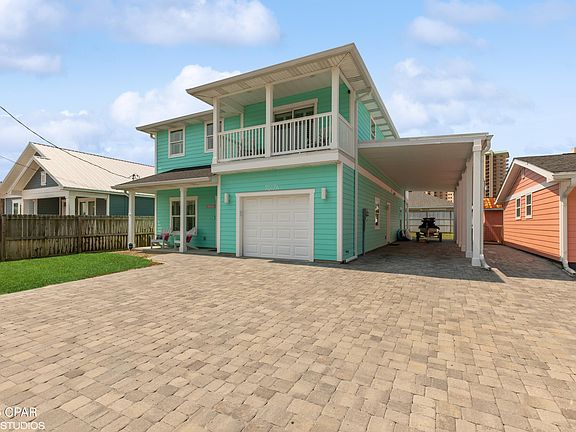 Attention beach lovers! Don't miss your opportunity to own your next home in beautiful Panama City Beach, Florida. Only a 5-minute walk to the pristine white sand beaches this area has to offer! Short term rental allowed making this a great investment opportunity! This custom-built home spared nothing when it comes to quality! Built and lived by a local custom builder, this home offers 2x6 exterior framing, granite countertops, waterproof vinyl plank flooring throughout, over $12K in custom plantation shutters on each window and door opening, LG kitchen appliances, large bedrooms including 2 master bedrooms (one upstairs, one downstairs), walk in closet in each bedroom, solid wood interior doors, large lower patio AND balcony for entertaining in back, as well as an exterior shower. Large carport on West side of home to park boat or RV. Paved driveway leads through carport and connects with back patio. Spray foam insulation installed which provides incredible energy efficiency. Extended depth single car garage (32ft x 15ft). 6'' seamless gutters and automatic irrigation system installed. Several boat ramps located in neighborhood which provides access to the Gulf of Mexico. This home won't last long, so schedule a showing today! This home is not a duplex. It is an individual family residence.