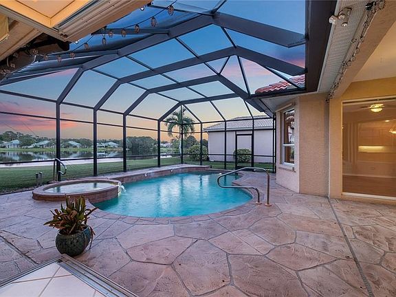 You will love living in Palm Aire, a well-located Sarasota community less than 20 minutes from downtown, and you will really love this fantastic lakefront home with its own private pool. Set on a lot selected for its exquisite natural beauty and close to quarter-acre size, this is Florida living at its best. Double glass doors- always a sign of elegance- open to a naturally flowing floor plan encompassing living and dining rooms, a spacious office/den, and four comfortable bedrooms. Host dinner parties with ease from the open Quartz adorned kitchen, which encourages social occasions with its open design and bar top seating for guests to perch at. Wake up to lake views from the master bedroom suite, which offers amenities like double sinks, a soaking tub, separate walk-in shower, and easy access to the lanai. Take the party outside easily on the oversized lanai that spans the length of the home, where you'll entertain poolside or hop into the spa to unwind. Residents of this gated neighborhood pay a low HOA fee and no CDD fees, plus have the option to become members of the renowned Palm Aire Golf & Country Club.