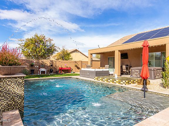 Your dream backyard oasis awaits you! This 3 bdrm 2 ba with resort like backyard located in Laveen Meadows is on the market today! Be prepared to fall in love from the moment you pull up! This bright and spacious great room floor plan is tastefully decorated in a neutral color pallet with tile in all the right places and plantation shutters throughout. The open kitchen boasts , staggered white cabinets w/crown molding, stainless appliances, granite counters, center island with breakfast bar and a convenient pantry for all of your storage needs., The master retreat offers a spa like bath w/dual sinks, a separate tub/glass shower, sizeable walk-in closet and private entrance to the amazing back yard. This backyard oasis has it all... A gorgeous play pool with pebble tech finish, baja step and several water features (this is not just your ordinary play pool), free standing hot tub along with multiple sitting areas to relax and enjoy the beautiful weather Arizona has to offer! Truly an entertainers delight! The energy efficient home is equipped with a leased solar with fixed monthly payment of $106. That equals to super low monthly utilities for this all electric home! Seller may consider paying off the solar with the right offer! This turn key beauty screams pride of ownership throughout! Don't miss out on the opportunity to call this YOUR new home! Schedule your own private showing today!